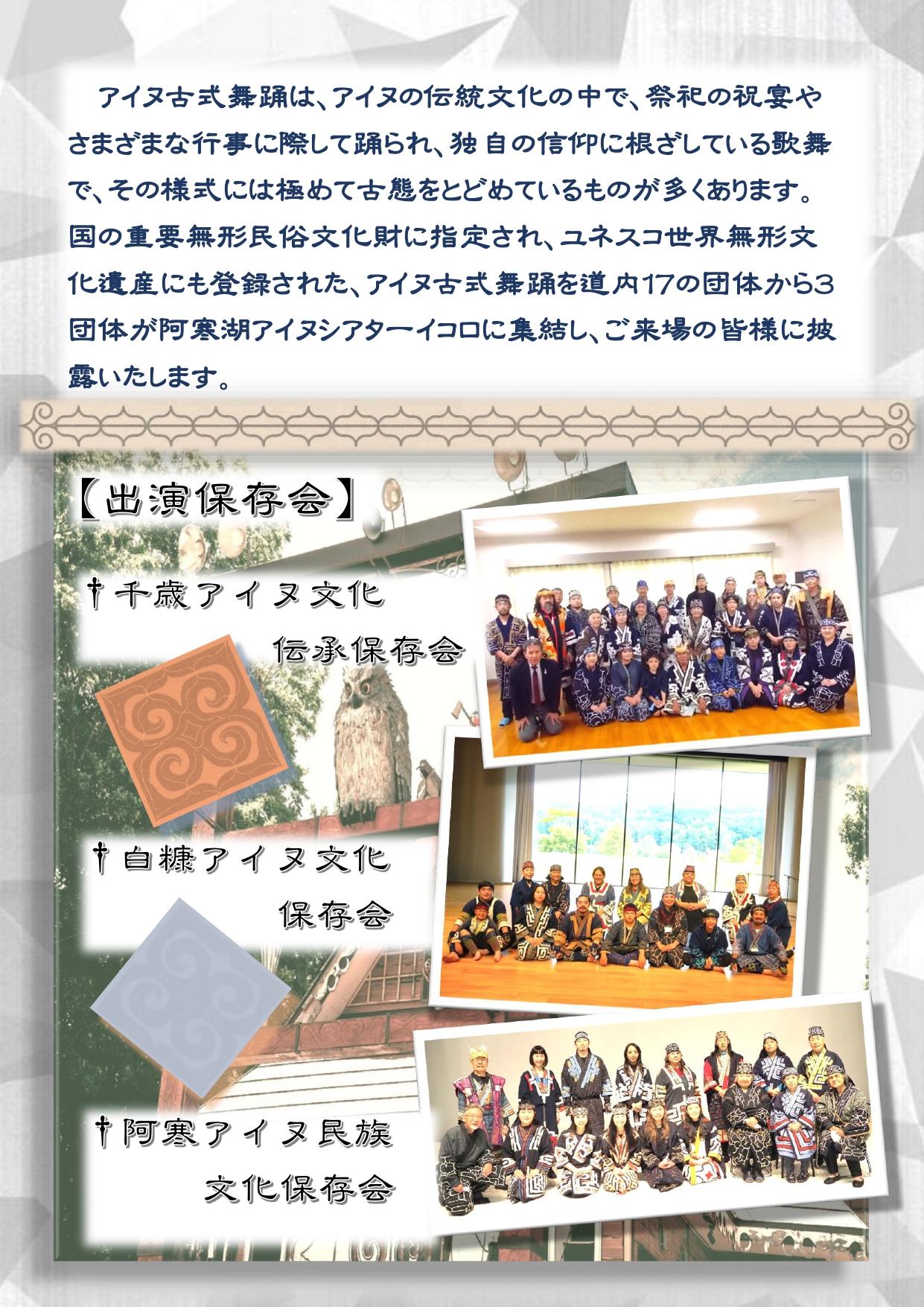 主 催 : 北海道アイヌ古式舞踊連合保存会 (Tel:011-221-0462)