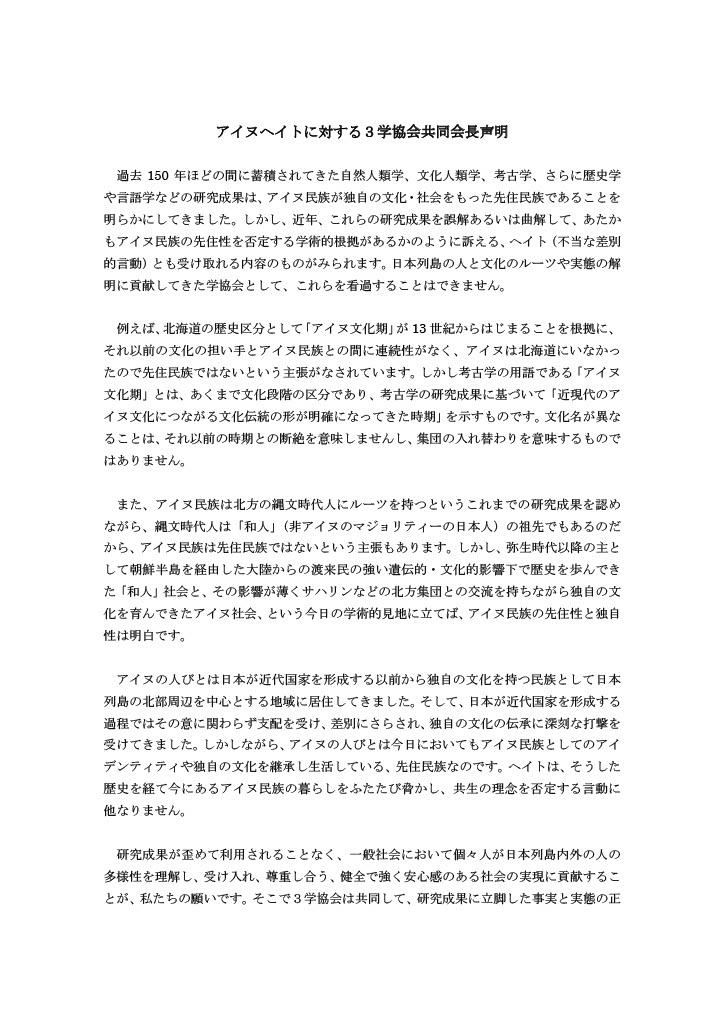 「アイヌヘイトに対する3学協会共同会長声明」(2025.12.15)について